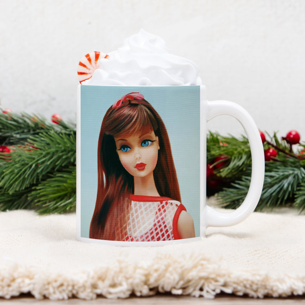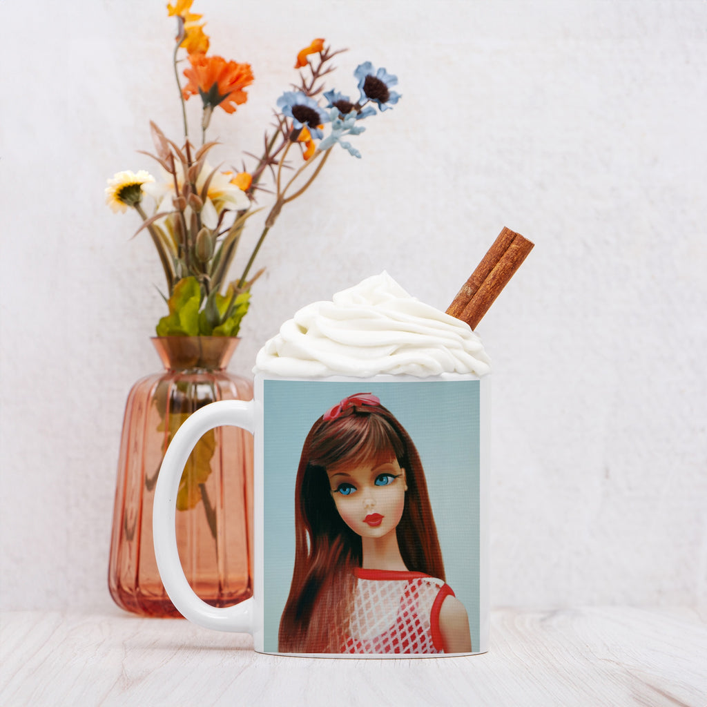 Enjoy your favorite drink in a Barbie mug!  This mug features “Twist 'N Turn Barbie,”  original artwork/oil painting by Judy Ragagli. Warm your soul with a Barbie mug and enjoy your favorite drink in a perfectly sized ceramic mug. It’s microwave safe and dishwasher safe and made of white, durable ceramic in an 11-ounce size. The perfect gift for your true coffee, tea or hot chocolate lover!
