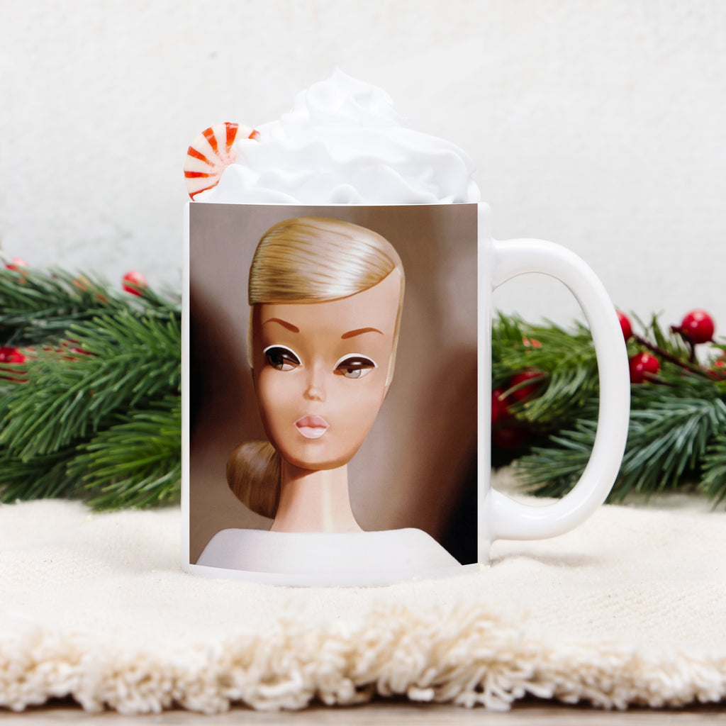 Enjoy your favorite drink in a Barbie mug!  This mug features “Platinum Swirl Barbie,”  original artwork/oil painting by Judy Ragagli. Warm your soul with a Barbie mug and enjoy your favorite drink in a perfectly sized ceramic mug. It’s microwave safe and dishwasher safe and made of white, durable ceramic in an 11-ounce size. The perfect gift for your true coffee, tea or hot chocolate lover!